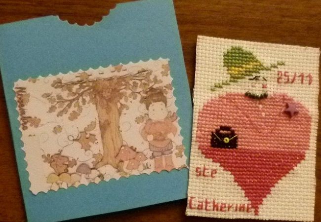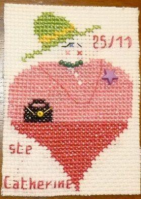 voici celle que j'ai envoyé à Françoise P, j'y ai représenté la Ste Catherine, je ne sais pas si cela se fête encore beaucoup maintenant, mais moi je l'ai coiffé !!
