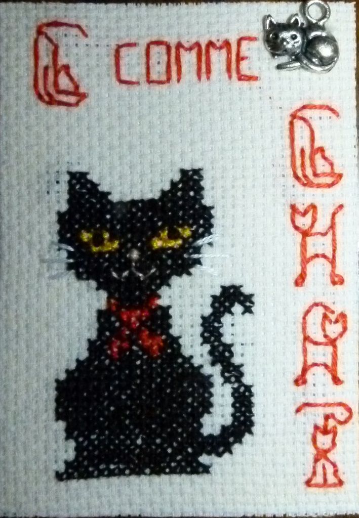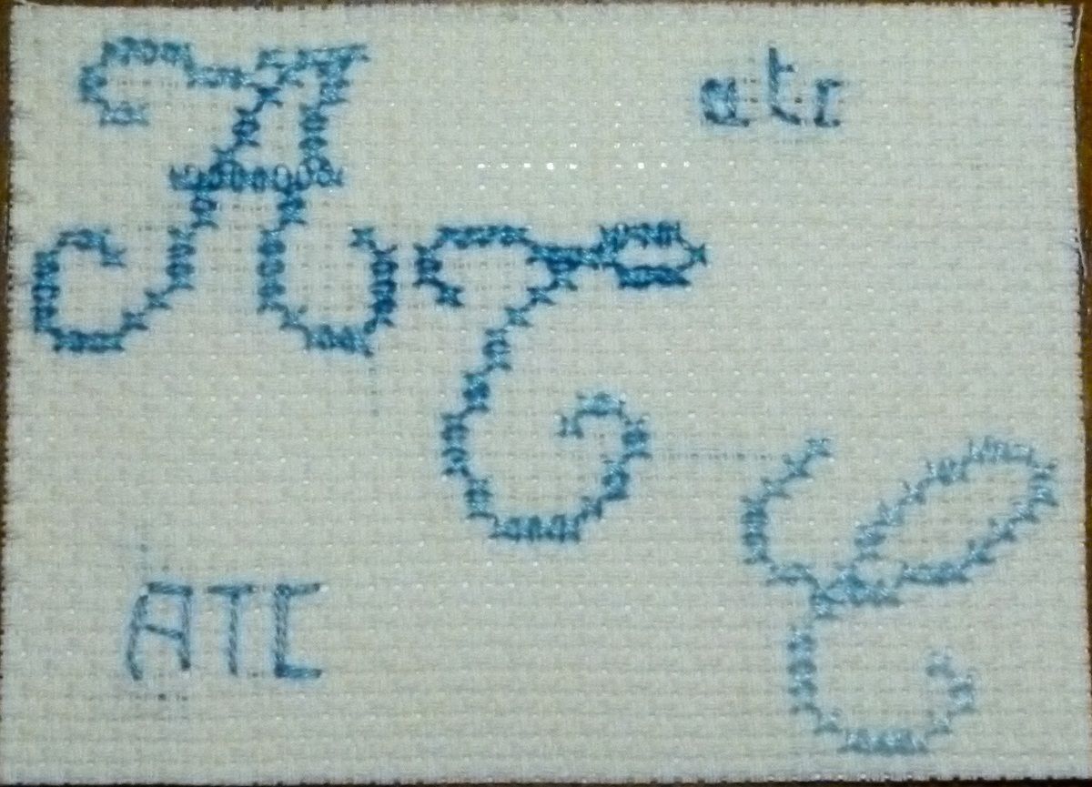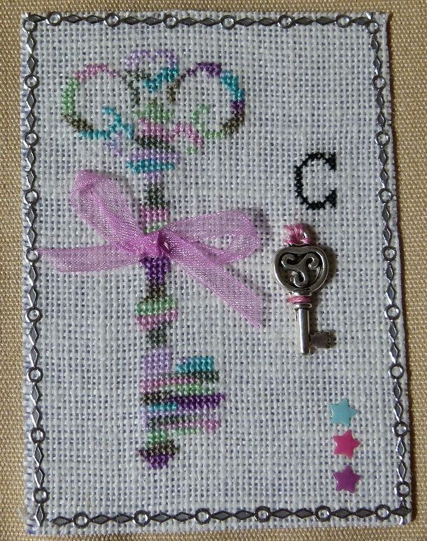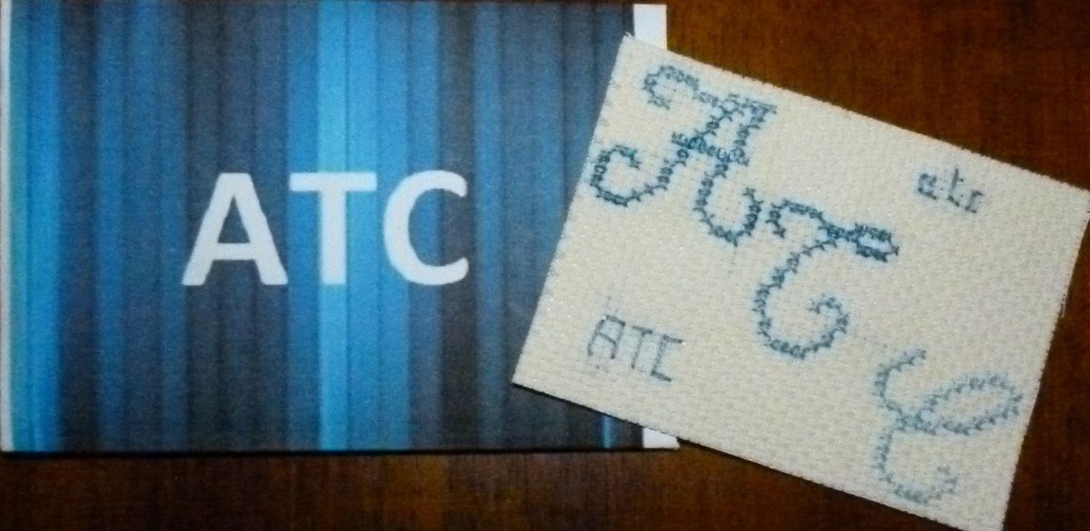 et voici l'ATC que je lui ai brodé je pense que vous n'allez pas etre surprise par mon choix ( Denise s'en doutant elle a cogité et m'a brodé autre chose !!)