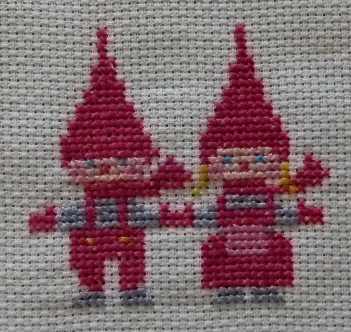 la première partie du sal d' Anne Marie http://broderie.over-blog.org/ , avec 2 adorables lutins du père noel