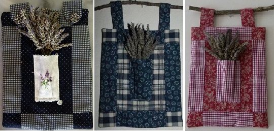 j'aurai du prévoir plus de petits bouquets de lavande, car en général c'est un petit cadeau bien apprécié, un petit récapitulatif des 3 autres, j'aime bien jouer avec les tissus